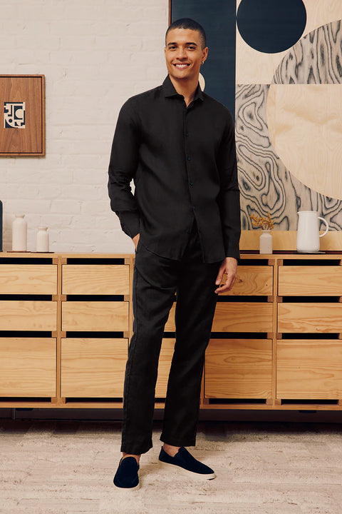 A house classic, the Antonio Linen shirt is a wardrobe staple. It's made from fine Italian linen, to fit a regular silhouette, structured with a dress shirt collar and finished with pearlescent buttons.