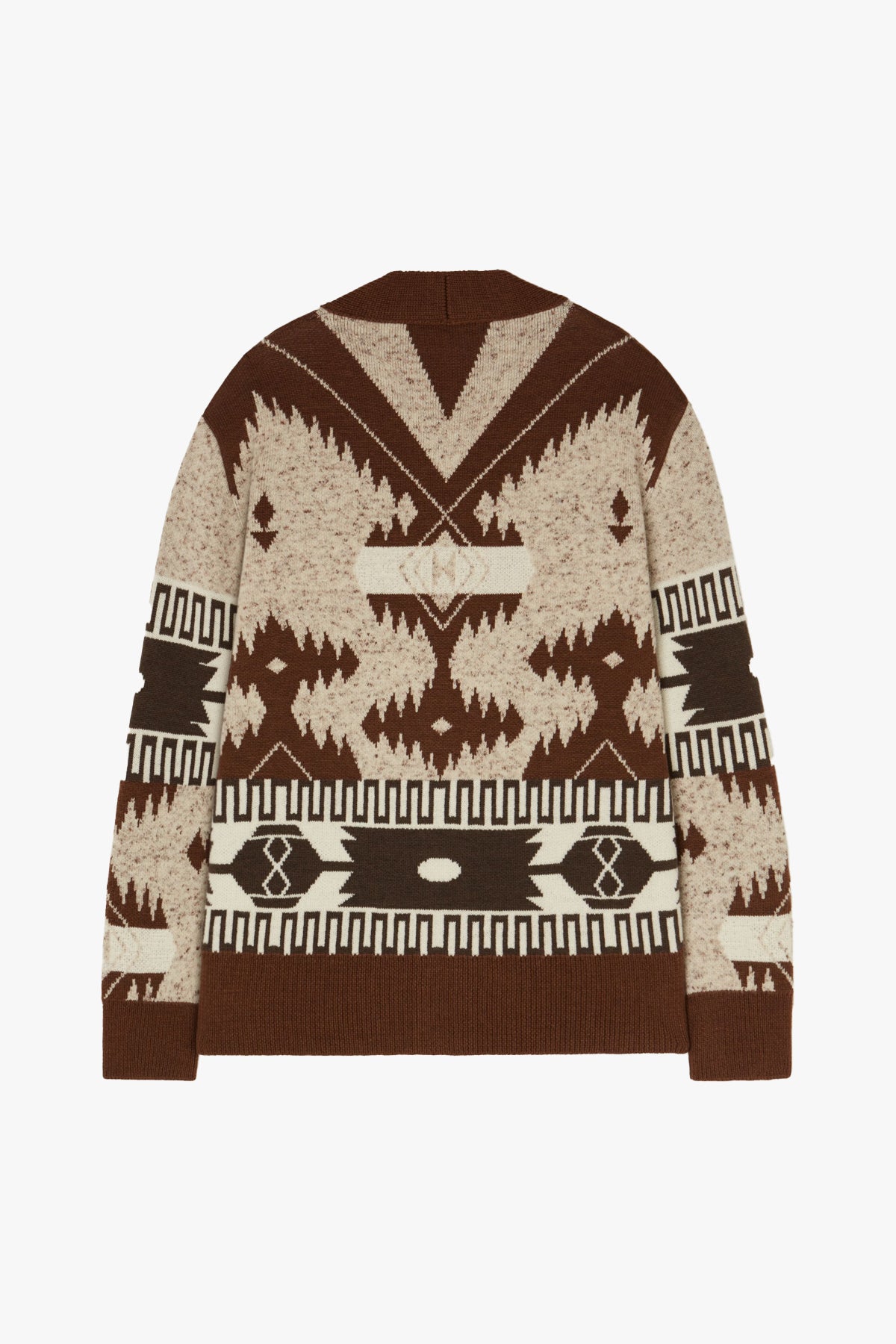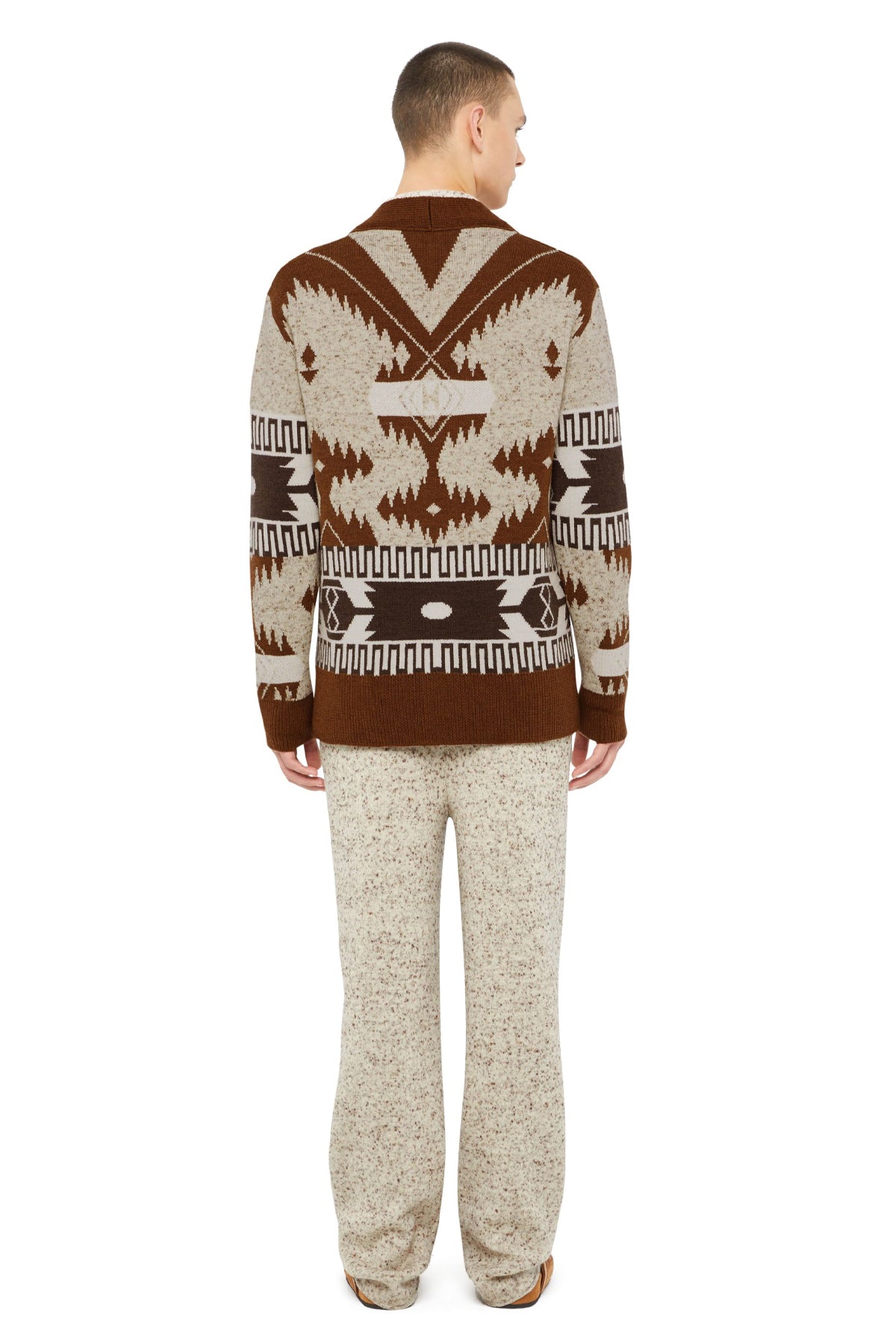 Alanui travels to the wilds of the Californian desert this season. Crafted from a rich wool and linen blend, the Dreamscape Icon Cardigan features the Iconic Alanui pattern in a western-inspired color palette. Complete with bone fish-eye buttons and ribbed finishes.