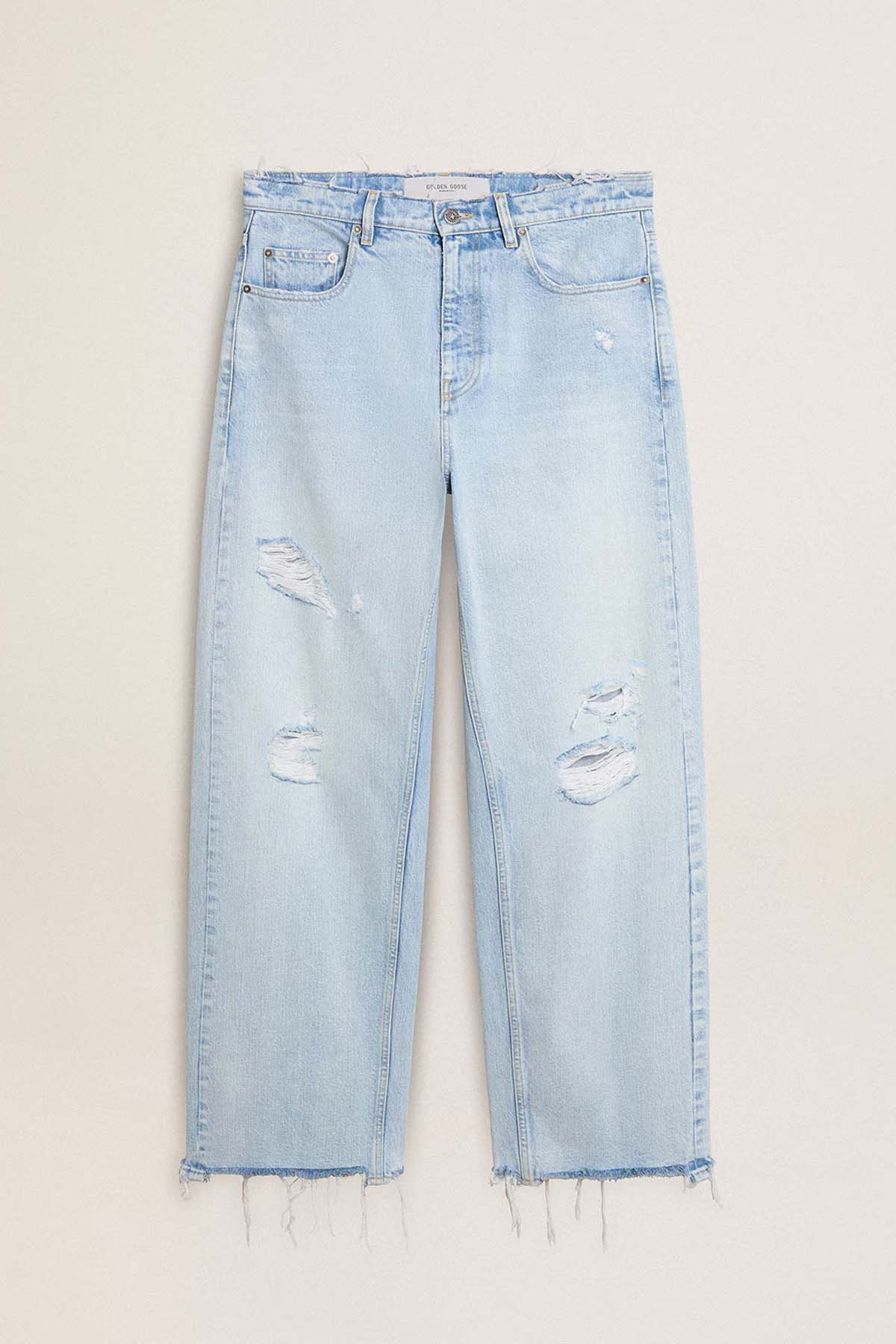 Inspired by the electric energy of the Nineties, the Morgan Wide Jeans celebrate the limitless power of shared dreams. With a bleached dye, oversized fit, and rips for a lived-in effect, these jeans capture the essence of togetherness and the rebellious spirit of music. Finished with five-pocket styling, raw edges, and the signature double star on the back.