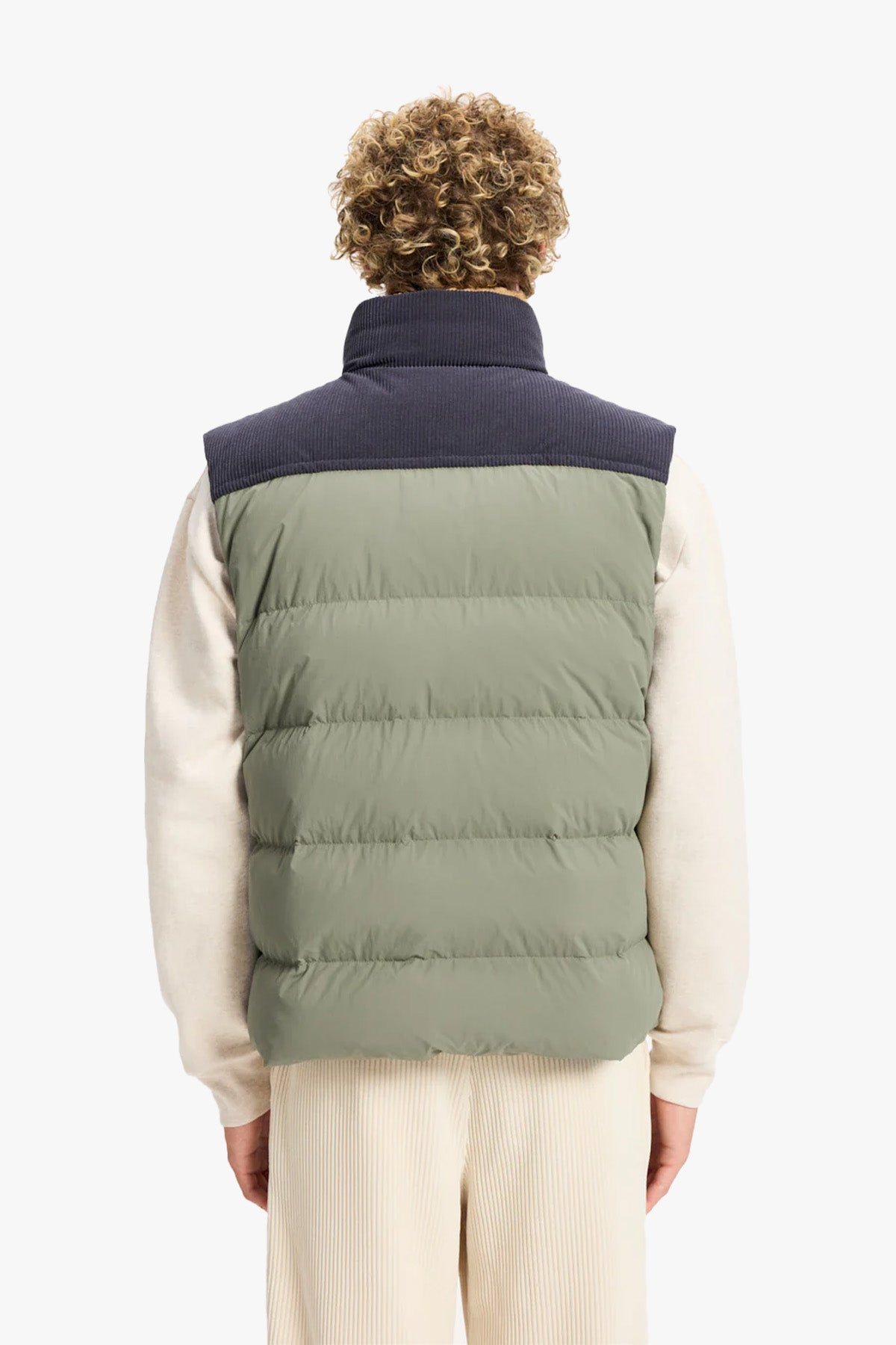 Retro John Down Vest er en moderne tolkning av den ikoniske John vesten, her i en kombinasjon av matt polyamid og fløyelsdetaljer som gir et raffinert vintagepreg. Den høye kragen er kledd i myk sherpa på innsiden for ekstra komfort, mens cordfløyelsdetaljer på skuldrene gir et distinkt og tidløst uttrykk. Vesten er fylt med fransk andedun med en fyllkraft på 750 cui som gir effektiv isolasjon uten å føles tung. Funksjonelle detaljer som glidelåslommer med børstet trikotfôr, innvendige glidelåslommer og justerbar nederkant gjør den både praktisk og allsidig. En vannavstøtende, pustende og vindtett vest som kombinerer teknisk ytelse med klassisk Pyrenex stil.