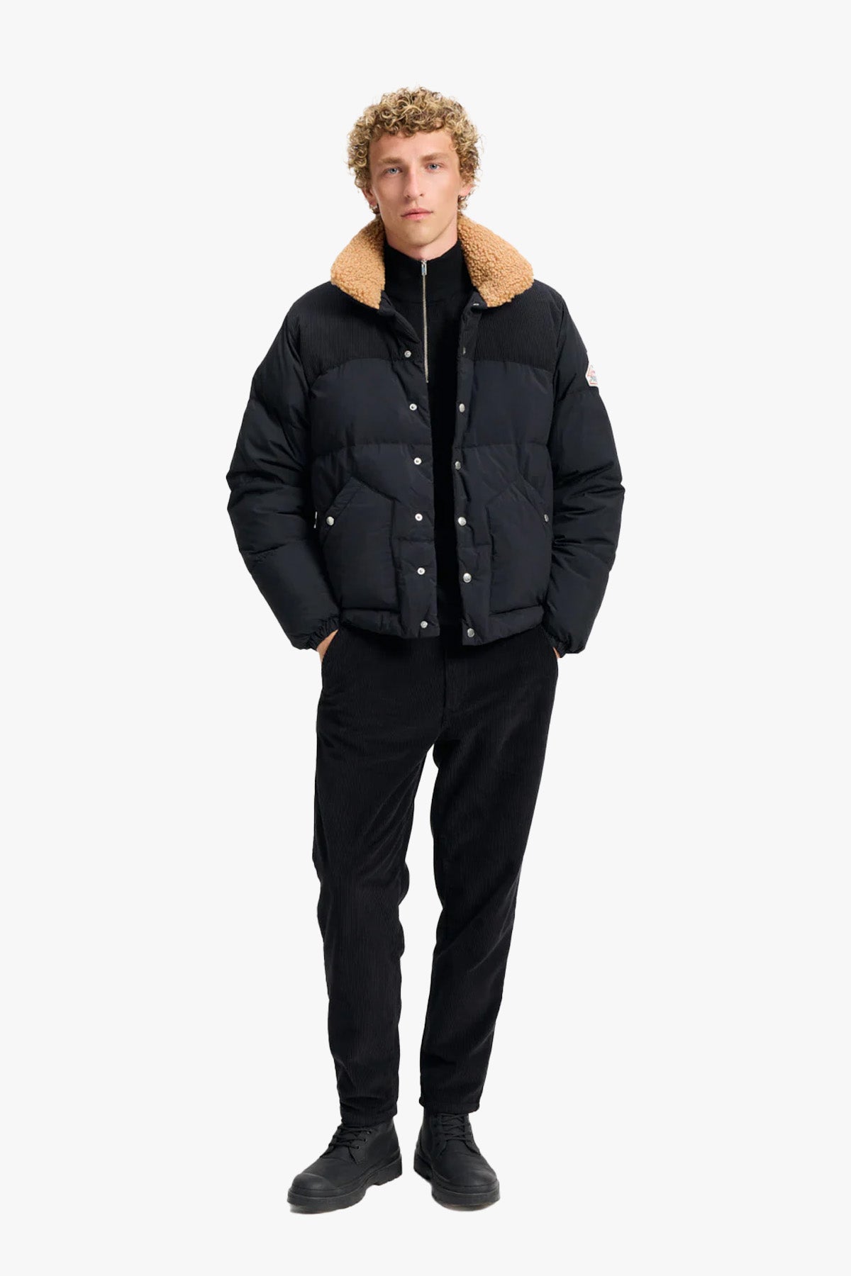 Retro Fiery Down Jacket er en unisex vinterjakke som kombinerer bomberinspirert design med Pyrenex sin tekniske ekspertise. Jakken har et karakteristisk uttrykk med cordfløyelsdetaljer på skuldrene, polyamid i kroppen og en myk sherpa krage som tilfører både varme og retro eleganse. Den rene silhuetten balanseres med to store frontlommer, elastiske mansjetter og en glansfull Snowflake trykknapplukking. Fylt med fransk andedun med en fyllkraft på 750 cui gir modellen pålitelig varme ned til minus 10 grader, samtidig som den holder en lett og komfortabel følelse. En vannavstøtende, pustende og vindtett jakke som gjør et tydelig statement i vintergarderoben.