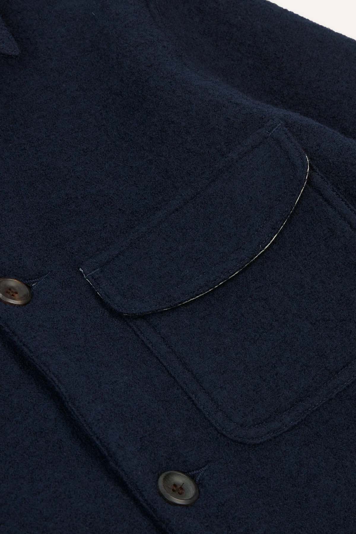 Denne varianten er laget av tett, 15 oz italiensk valket ull, valgt for sin varme, slitestyrke og behagelig taktile følelse. Innvendig sørger et mykt bomullsfôr for at jakken egner seg like godt utenpå skjorte og slips som over strikkede plagg.