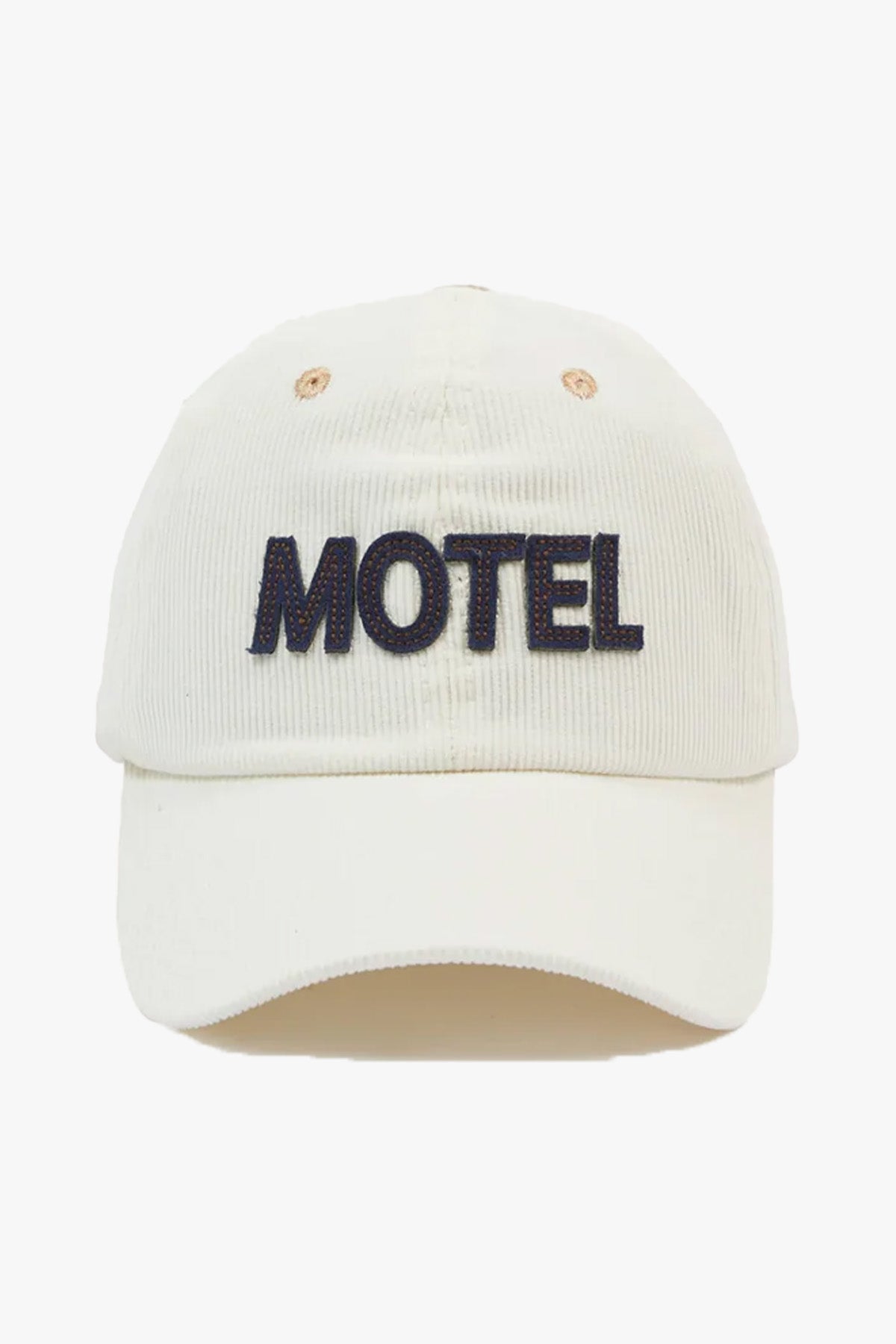 Motel Baseball Cap er en avslappet og tidløs seks panels caps laget i fin bomullscordfløyel som gir et mykt og taktilt uttrykk. Modellen har en ustrukturert krone og lett buet brem som skaper en vintageinspirert silhuett hentet fra klassiske athletic styles. Stoffet er garment washed for en myk finish som vil falme og utvikle en unik patina over tid, mens tonale sømmer og justerbar stropp gir et rent og minimalistisk uttrykk. Capen er dekorert med et filtapplikert motiv i ekte Drake’s ånd, inspirert av vintage souvenir og sportscaps funnet på reiser.