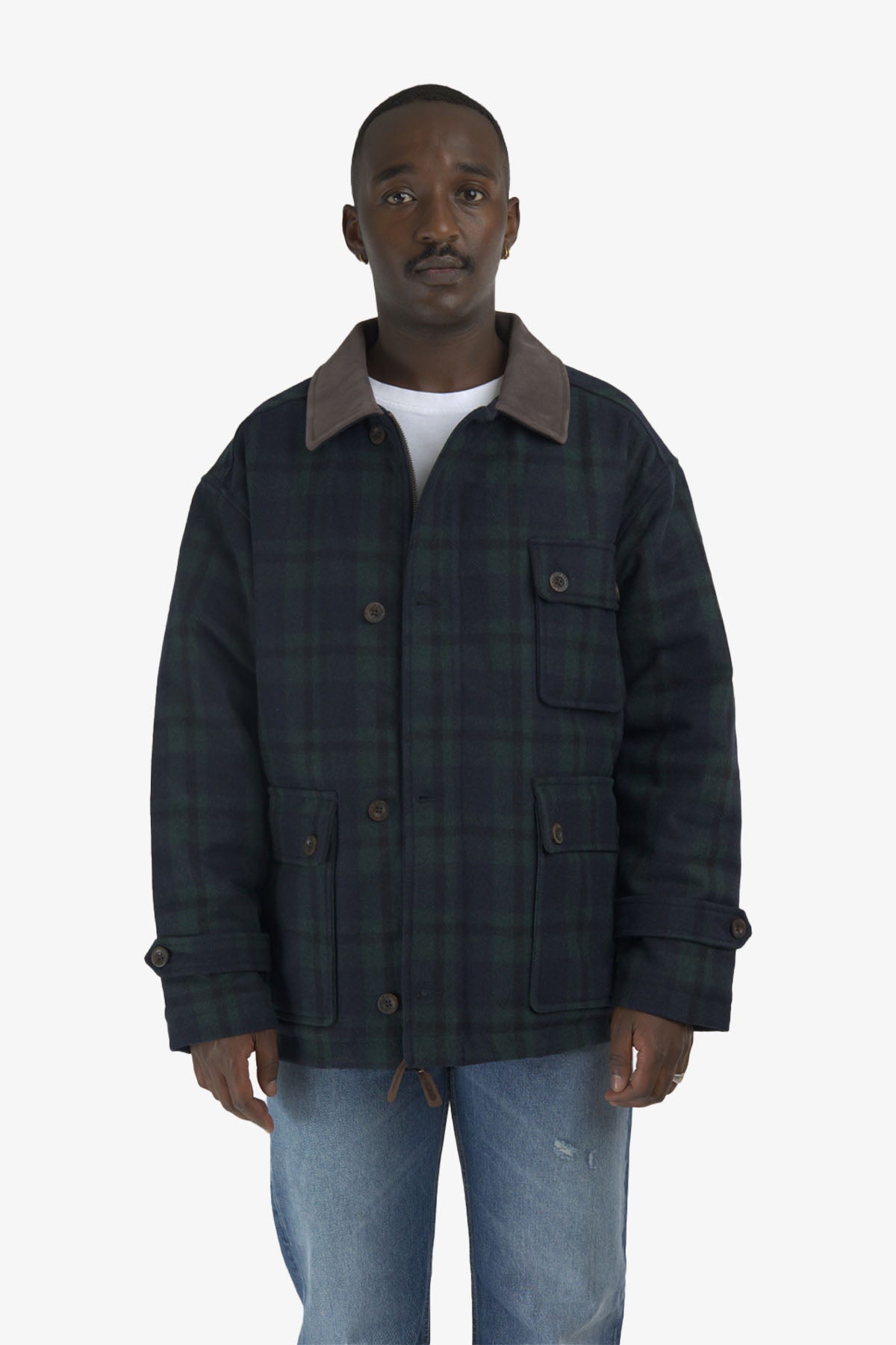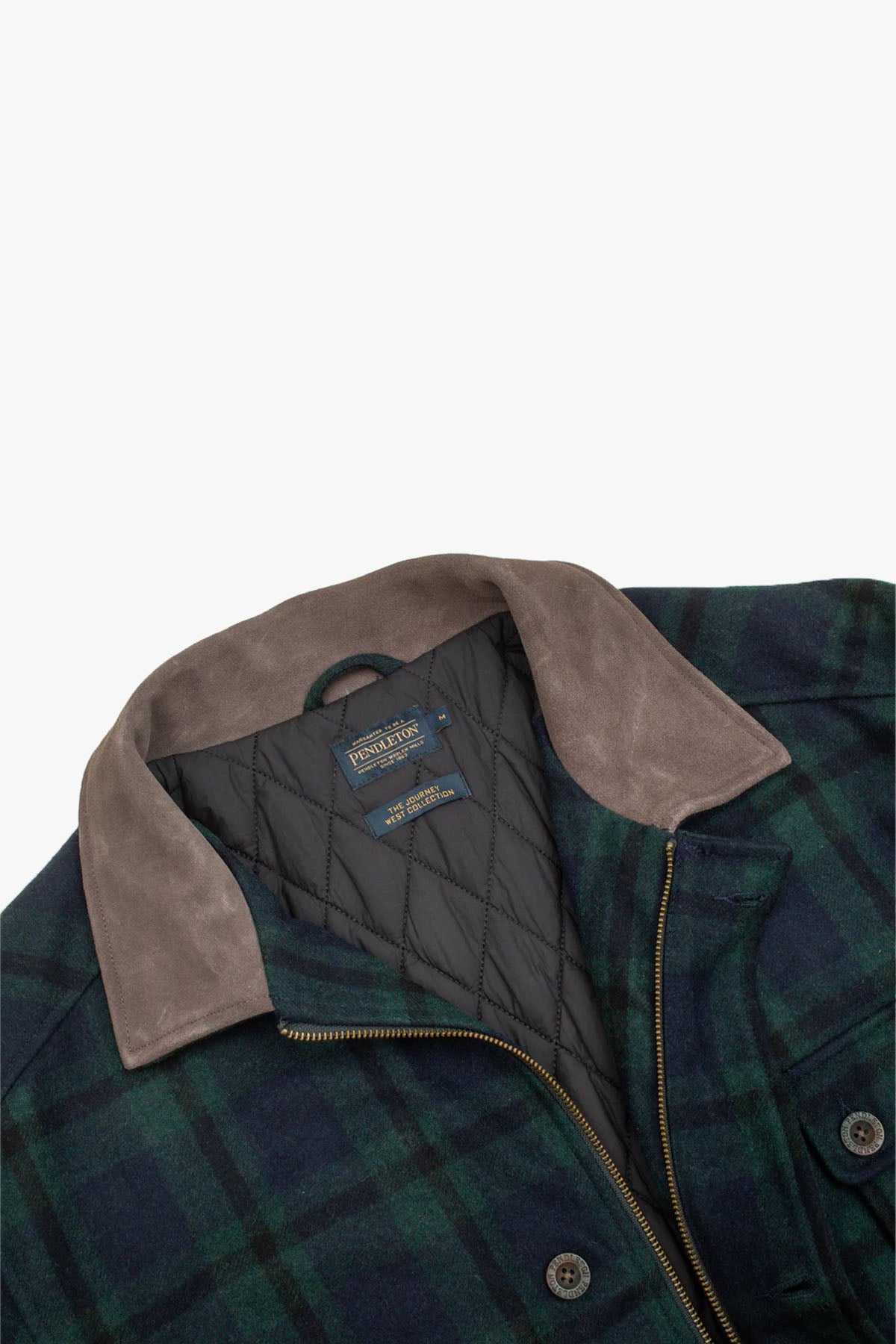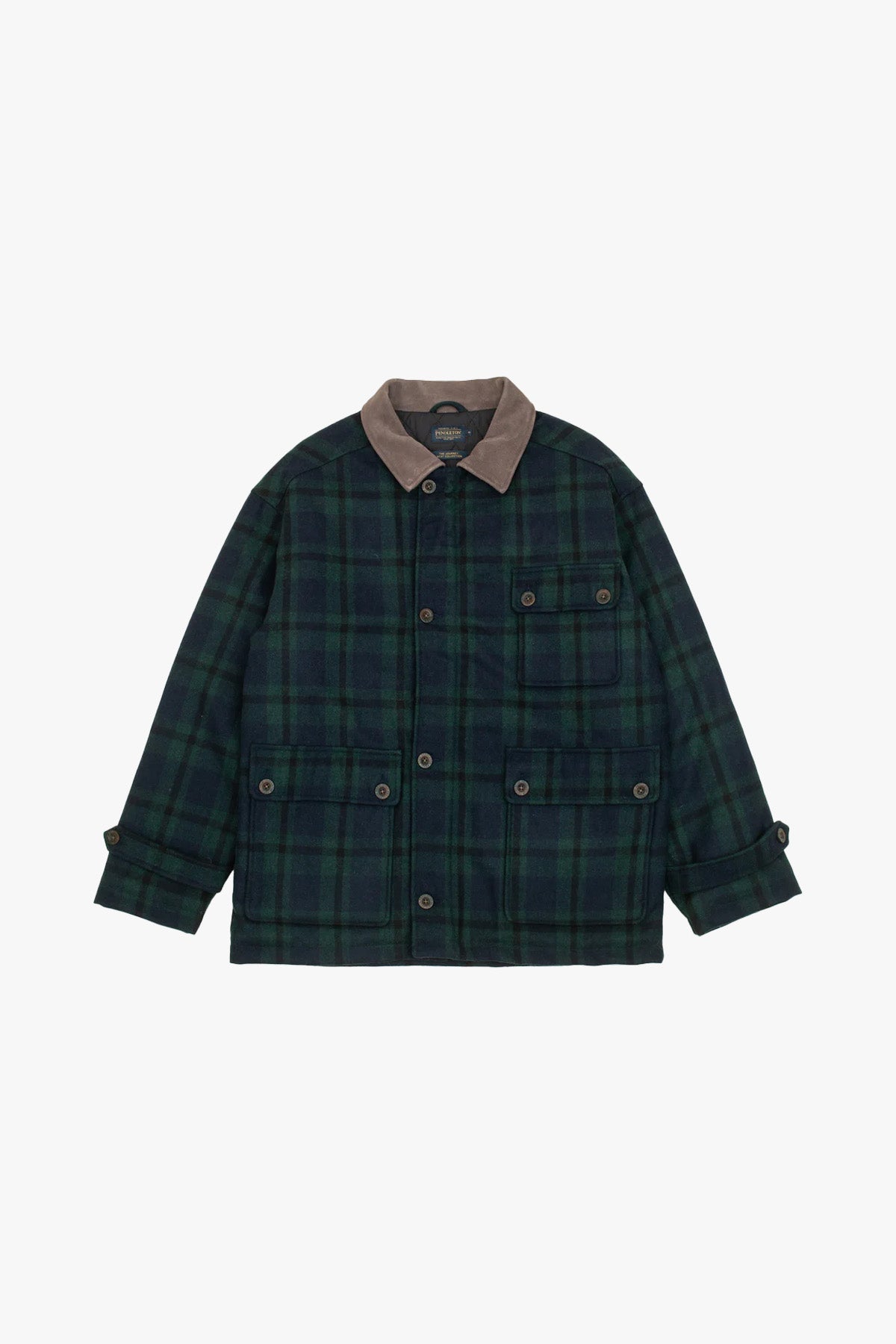 Inspired by the legacy of Pendleton founder Thomas Kay, the Wool Hunting Jacket is a tribute to American heritage and classic workwear. Part of the exclusive Europe-only Journey West collection, it blends iconic mid-century silhouettes with durable materials and thoughtful detailing. Crafted in a 60/40 wool-poly mix with a genuine leather collar and finished in Black Watch tartan, this vintage-style jacket delivers warmth, functionality, and timeless character.