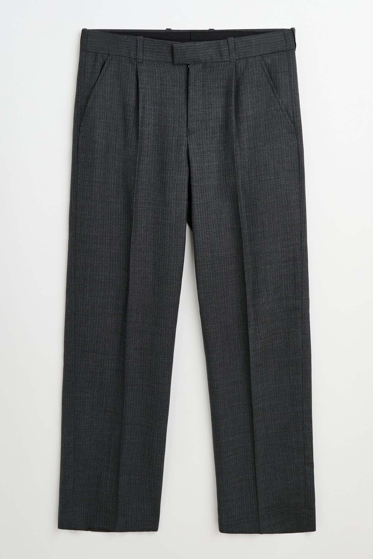 Produced in Italian virgin wool fabric, the men's Slack Trouser has a relaxed fit with a lower rise and features a hidden closure, pleats at the waist, pre-constructed waistband, and a slight bootcut silhouette. The trouser includes two side pockets, two back pockets, corozo buttons, YKK zip fly, and a refined cut through the thigh that creates a sharp feeling with the slightest bootcut from the knee down for the perfect leg opening.