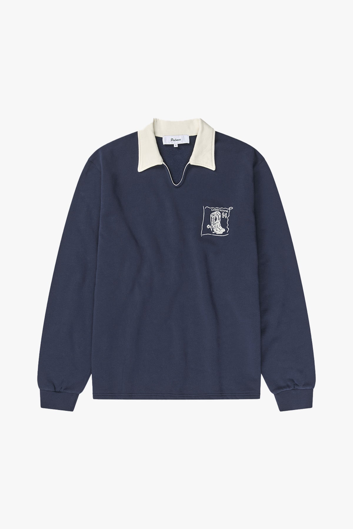 Boot Open Rugby Shirt fra Palmes er en avslappet rugbygenser med et sporty og raffinert uttrykk. Den marineblå fargen kombineres med en åpen krage med kontrastdetalj som gir plagget karakter. Den komfortable passformen gjør den like anvendelig til hverdags som til mer gjennomførte antrekk.