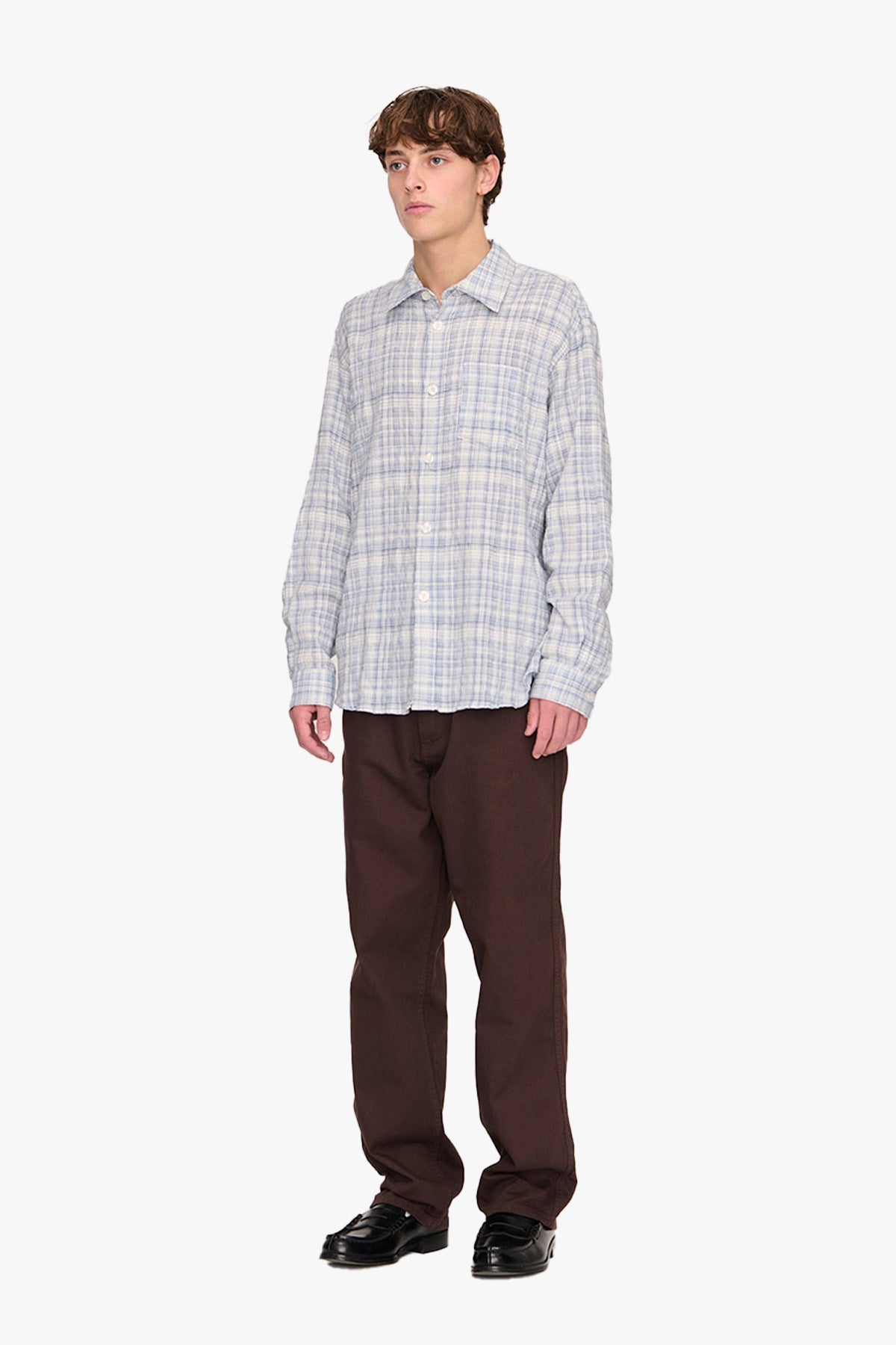 Wrinkle Shirt fra Palmes er en klassisk skjorte i en lett og strukturert blanding av bomull og lin. Den myke kvaliteten gir et naturlig fall og en diskret krøllet overflate som tilfører skjorten karakter og dybde.