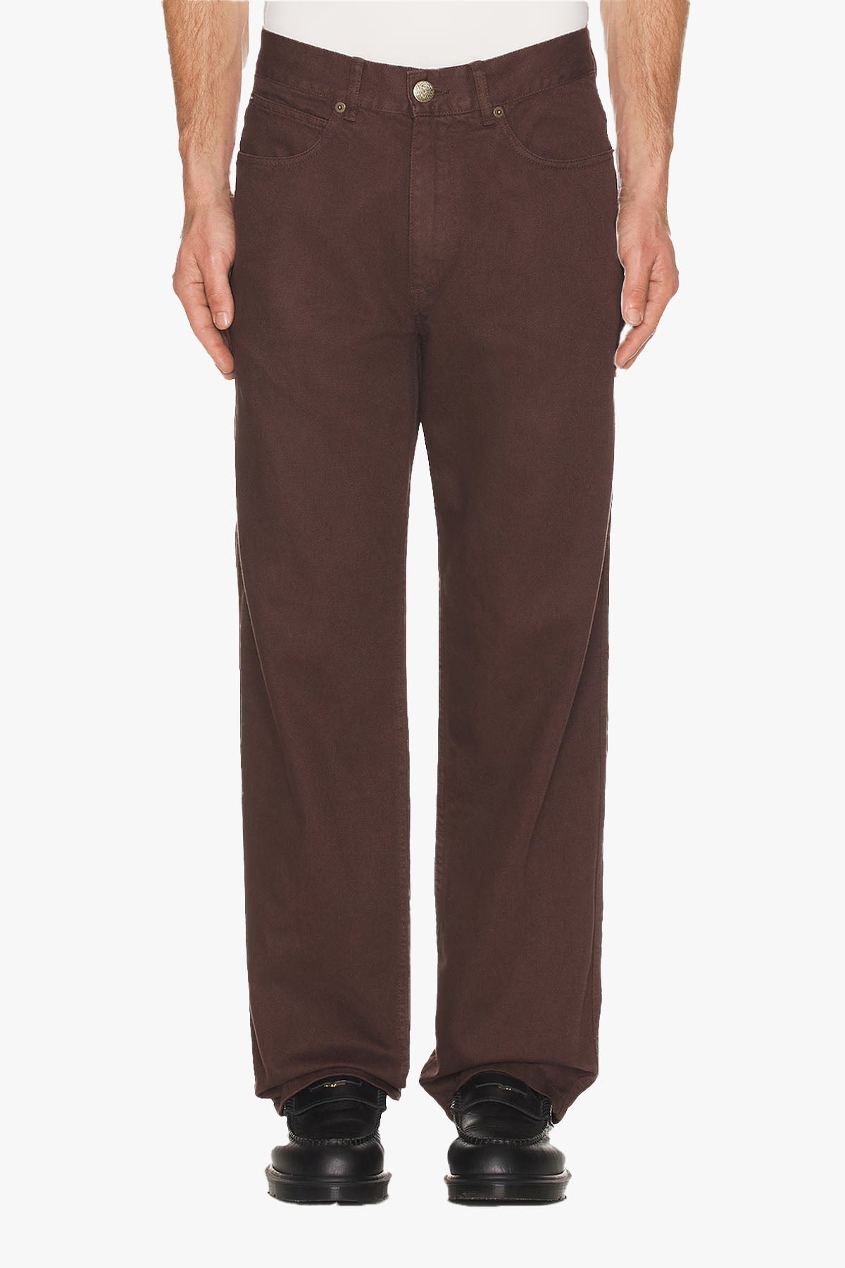 Coarse Trousers er en rettbukse med et elegant og gjennomført snitt, designet for en avslappet men raffinert hverdagsstil. Buksen er laget i en twillkvalitet av økologisk og resirkulert bomull som er garment dyed og forhåndsvasket for en ekstra myk følelse og en lett falmet tone. Messingknapper og gjennomgående dobbeltsøm gir et solid og tidløst uttrykk, mens detaljene er nøye balansert mellom funksjon og estetikk. En allsidig bukse som fungerer like godt til strikk og skjorte som til T shirt.