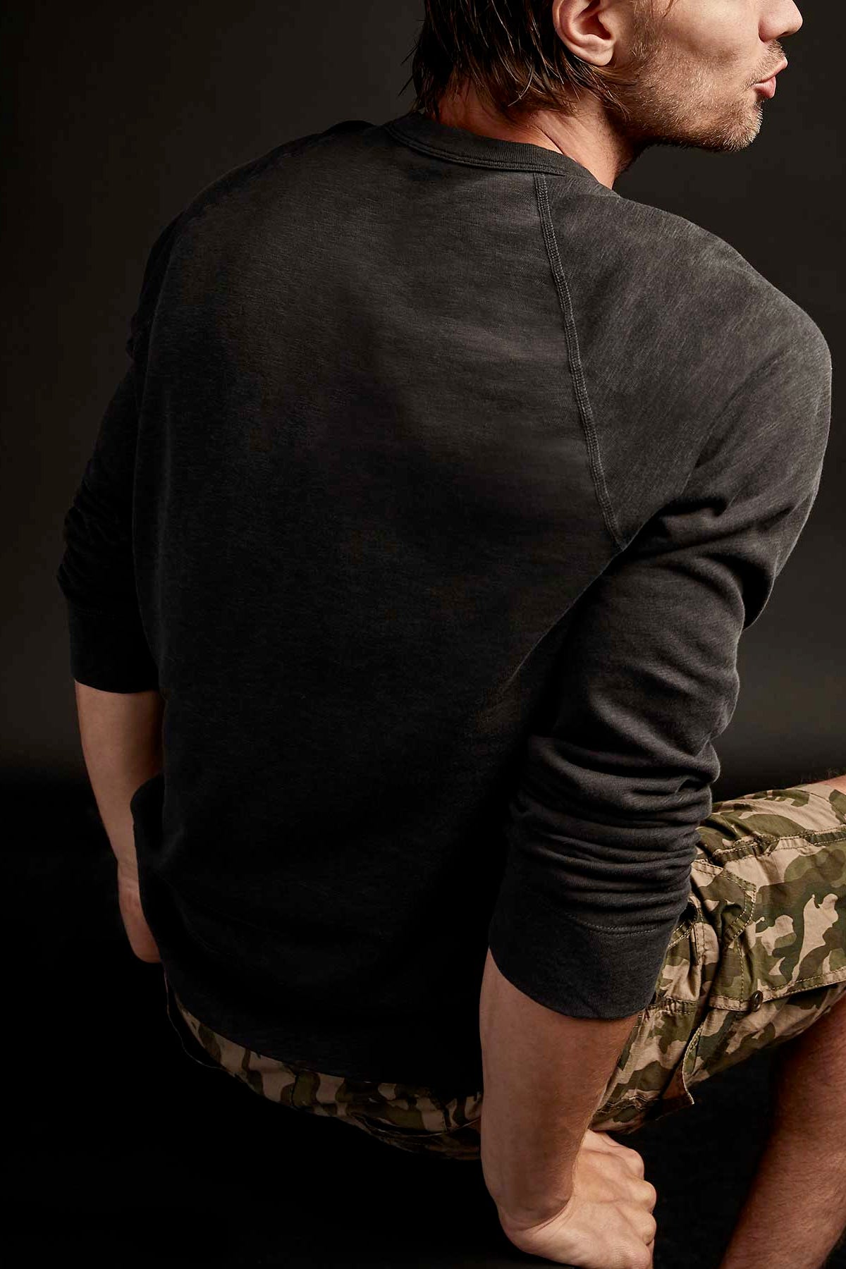 James Perse Vintage French Terry Sweatshirt is a mainstay in our classic collection. This French Terry (XA) pullover uses a blend of yarns to create a slightly heathered and dimensional effect giving it a vintage aesthetic. Details include full length raglan sleeves with 3 inch cuff and bottom hem as well as a binded crew neck. Lightweight yet durable, this is the perfect transition piece from warmer to cooler climates.