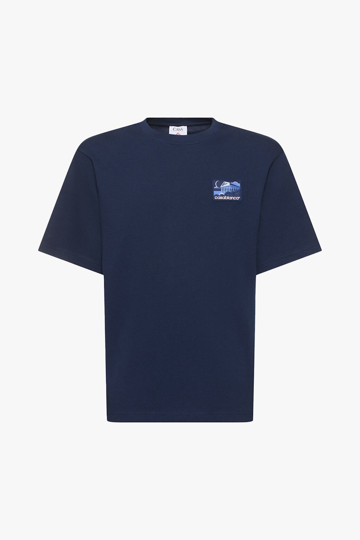 The Greek Temple t-shirt is a short-sleeved design crafted from organic cotton fabric. Completed with a rubber patch featuring the house's seasonal artwork inspired by the continued study of the classical beauty and contemporary allure of Ancient Greece, and a classic crew neck.