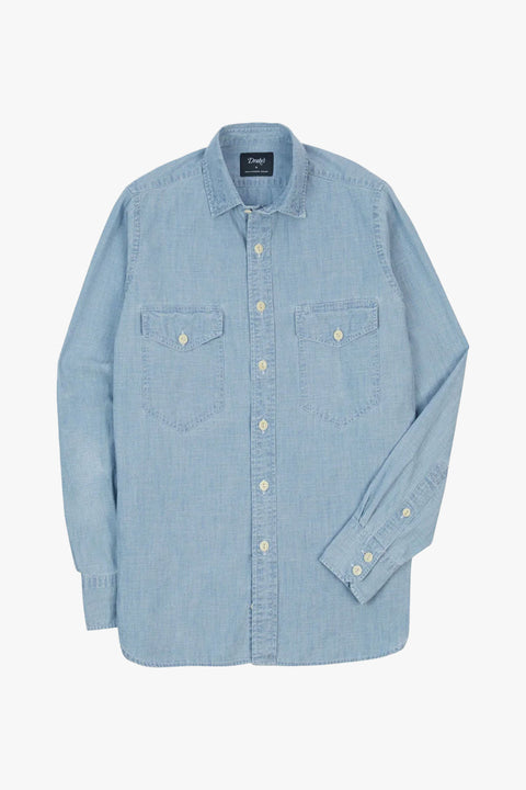 The ubiquitous Western shirt receives the Drake's treatment in the form of our usual single-needle construction and corozo buttons. Crafted from 7.6oz cotton denim, indigo-dyed and washed, this hardy bit of shirting will develop a patina and get better with wear over the years, if not decades.
