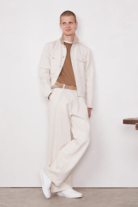 The Elvir Denim Jacket is a workwear-inspired piece crafted from premium cotton denim. Featuring a corduroy collar, front button closure, and four patch pockets, this unlined jacket offers both functionality and timeless style. Finished with a garment wash for a refined look, it pairs perfectly with the matching pants for a cohesive outfit.