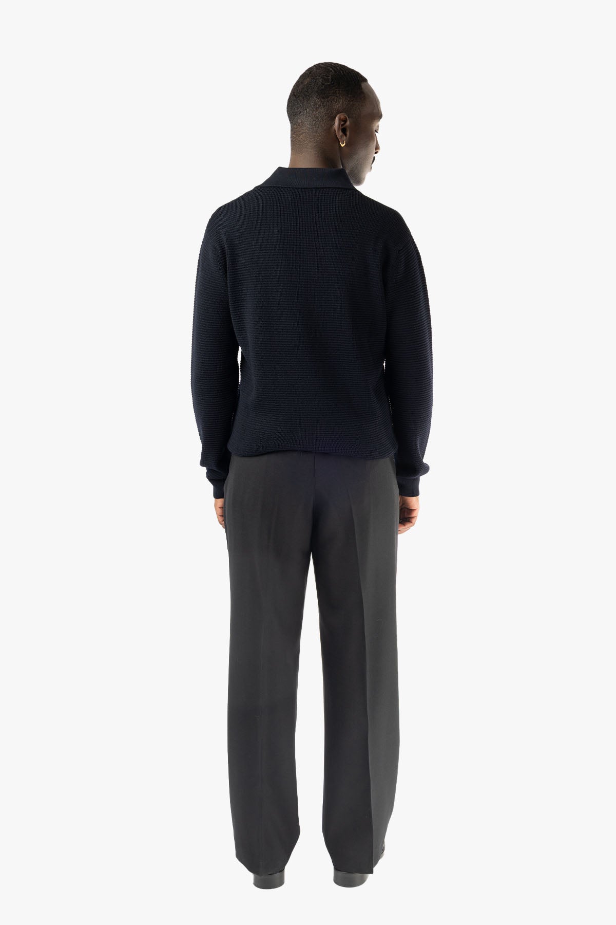 The Orlando Knitted Polo is a timeless staple crafted from 100% merino wool, offering lightweight warmth and refined texture. With ribbed trims and a classic fit, this Italian-made piece brings effortless sophistication to any look—perfect for layering or wearing solo.