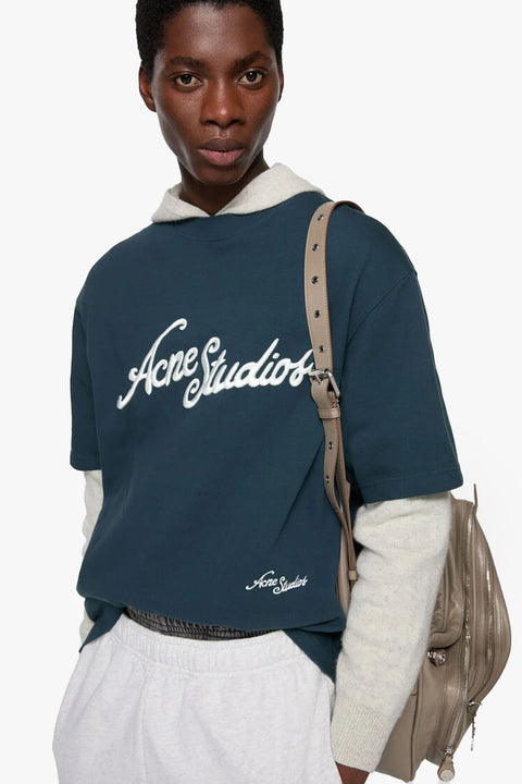 Crew neck t-shirt is cut to a relaxed unisex fit. Detailed with a seasonal Acne Studios 3-D embroidered logo. Crafted from cotton with a sprayed vintage finish.