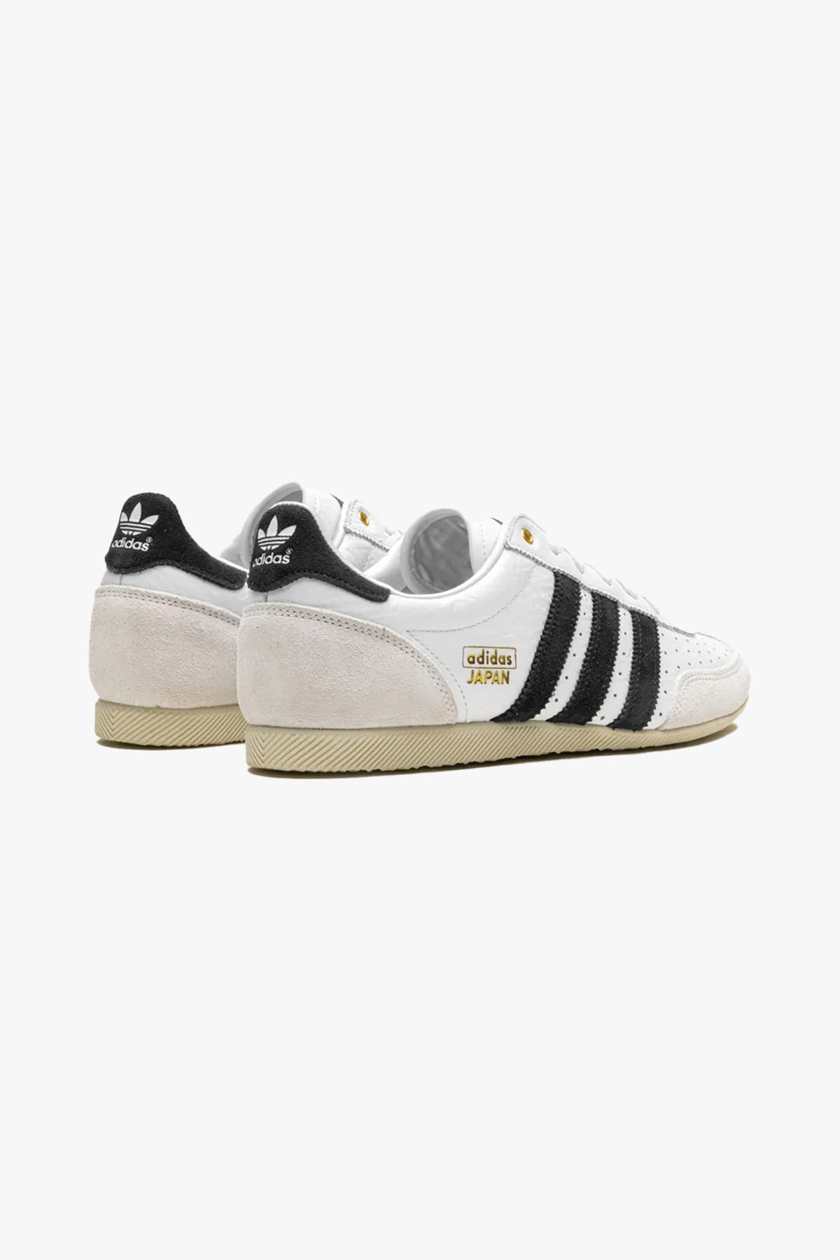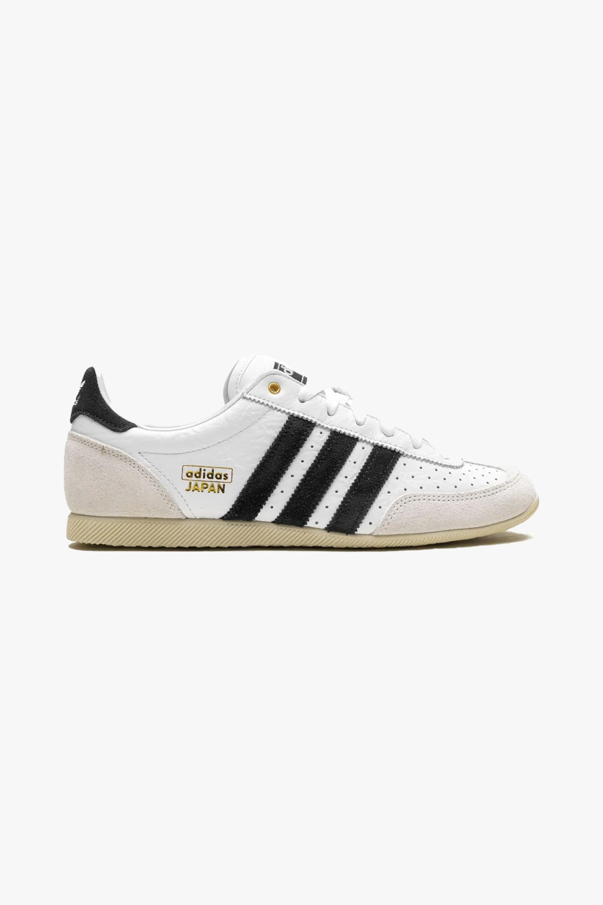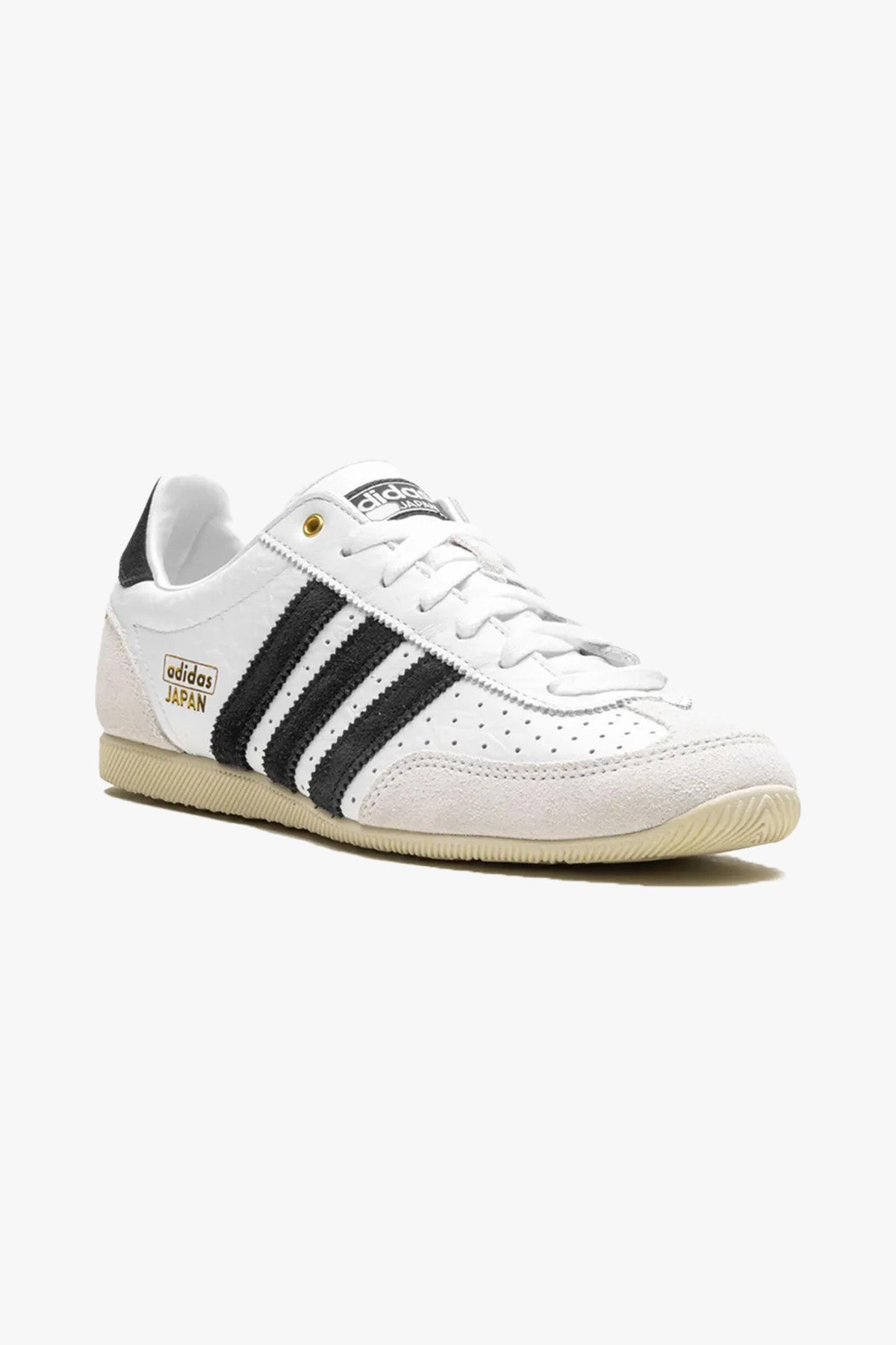 Japan W er en elegant og retro-inspirert sneaker fra Adidas, laget i mykt kalveskinn og semsket skinn for et rent og tidløst uttrykk. Modellen har de ikoniske 3-Stripes på siden, en kontrastfarget hælkappe og klassiske detaljer som logopatch på tungen og preget logo på siden. En rund tå, snøring foran og komfortabel gummisåle gjør den både stilren og behagelig til hverdagsbruk.