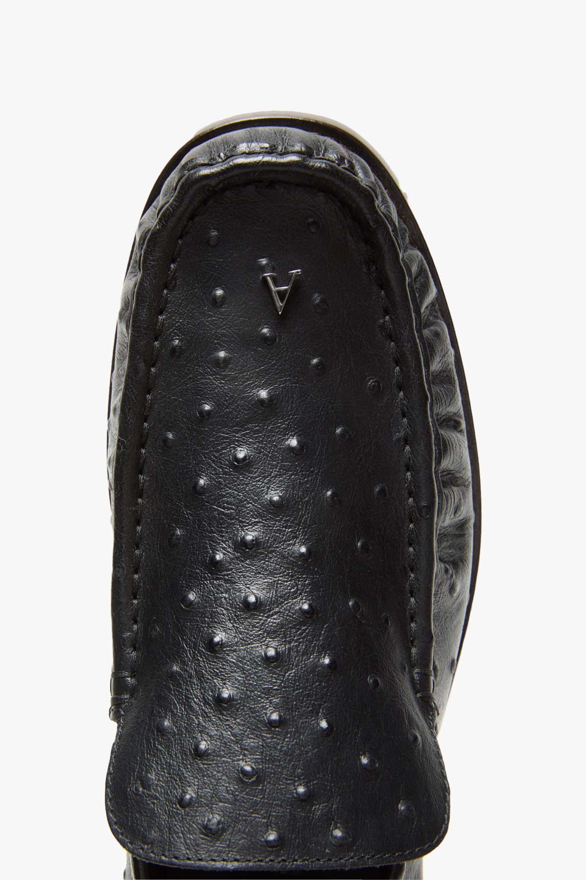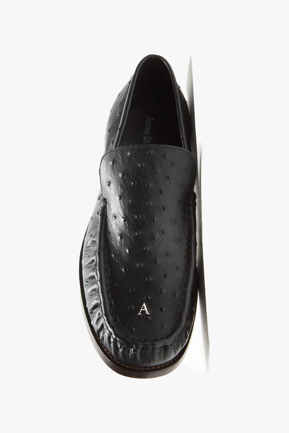 Acne Loafer er en elegant og moderne loafer laget av strutspräget kalveskinn som gir en raffinert tekstur og et subtilt statement. Modellen er detaljert med metallpregede Acne Studios-initialer på tåspissen og avsluttes med en lett cuoio-såle som gir både komfort og et eksklusivt uttrykk. En tidløs loafer som løfter enhver garderobe.