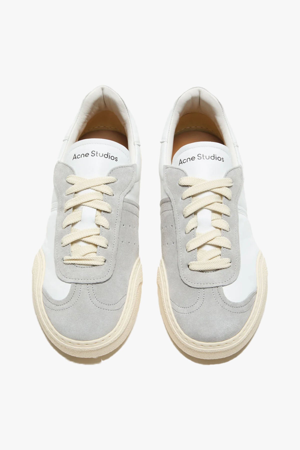 Bars Drago-sneakeren kombinerer minimalistisk design med premium materialer. Modellen er laget i en miks av glatt skinn og semsket skinn, og fullføres med et sort, preget Acne Studios-logo på tungen. Myke, merkede såler gir komfort gjennom hele dagen, mens den rene silhuetten gjør sneakeren enkel å style både til hverdags og mer oppkledde antrekk.