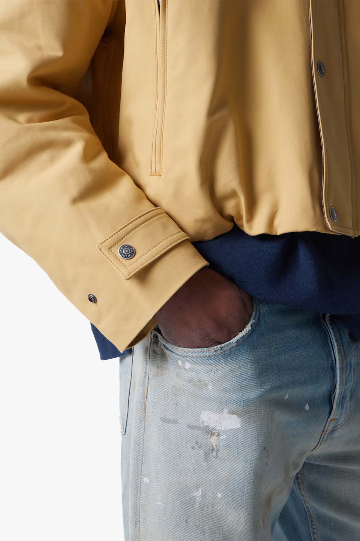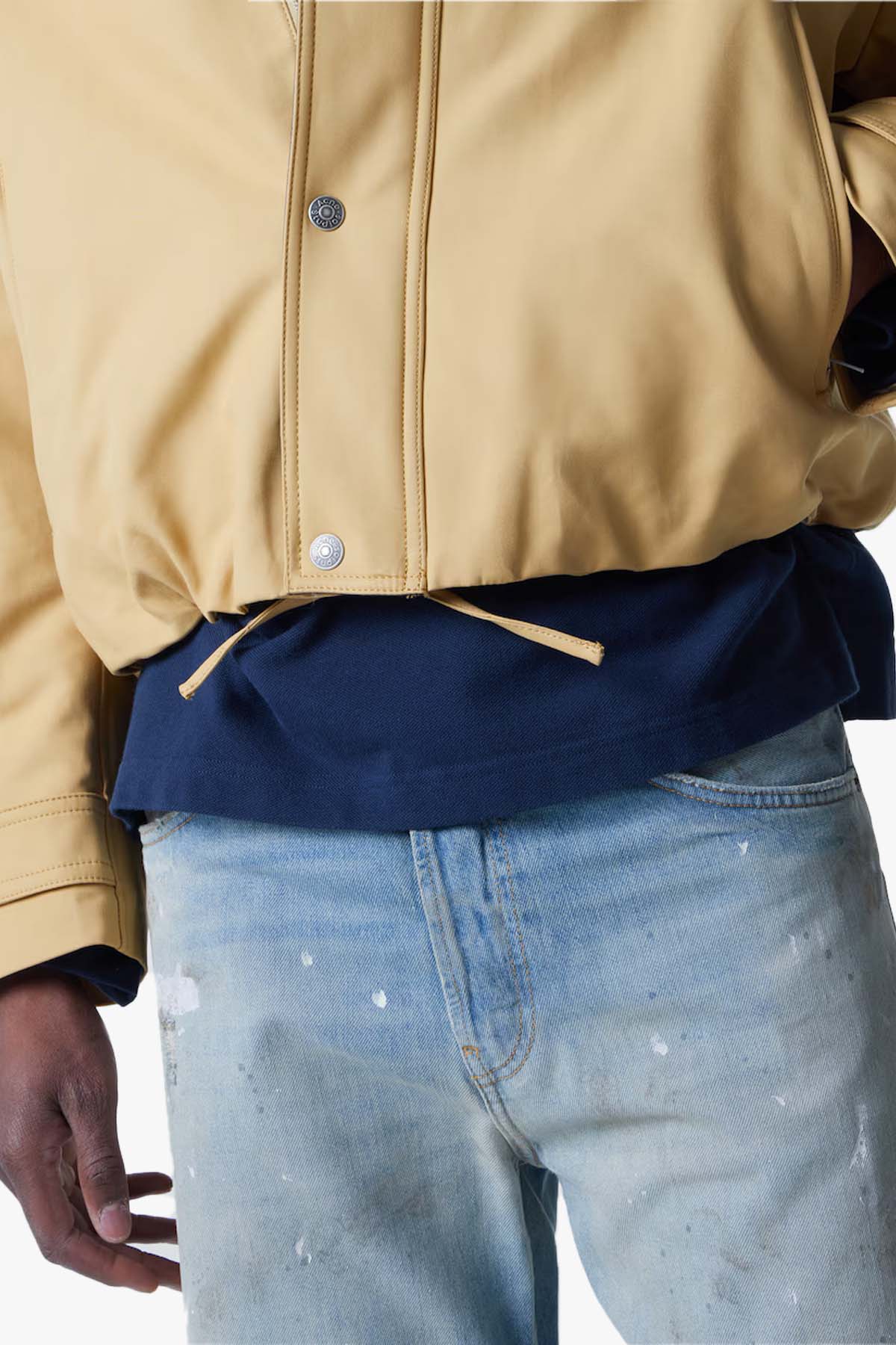 Twill Jacket fra Acne Studios er en moderne tolkning av den klassiske bomberjakken, laget i glatt bomullssateng med dobbel vev som gir plagget en myk, avrundet struktur. Jakken har en raffinert balanse mellom sporty og sofistikert, med kontrastkrage i imitert skinn og gjennomarbeidede detaljer. Passformen er regular og lengden går rett under midjen, noe som gjør den enkel å style både til hverdags og mer oppdressede antrekk.