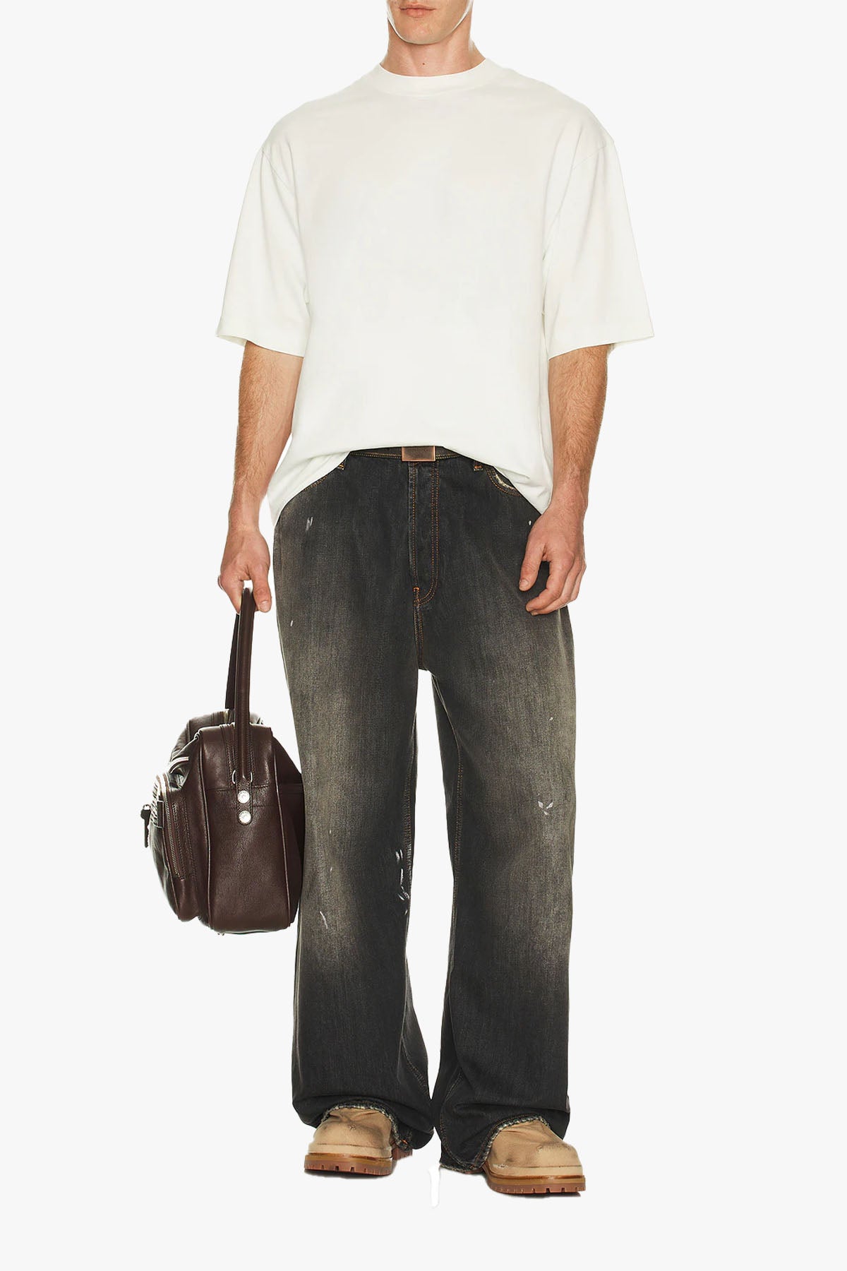 Denne kortermede T shirten fra Acne Studios er laget i myk, fin bomullsjersey med en lett falmet finish som gir et avslappet og innarbeidet uttrykk. Den rene silhuetten kombineres med en gummiert Acne Studios logo bak i midten, som tilfører et subtilt, grafisk element. Passformen er relaxed og unisex, noe som gjør plagget like anvendelig alene som i lag på lag styling.