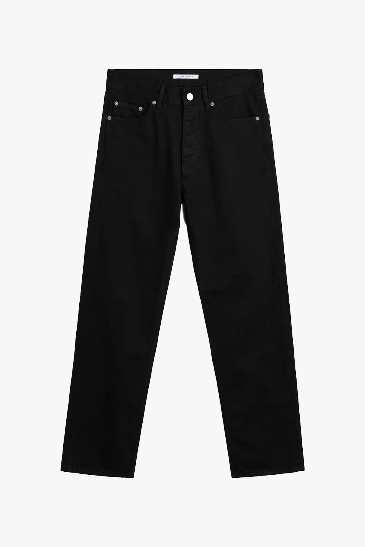Loose Jeans fra Sunflower er laget i en solid 13.5 oz svartfarget denim med en lett rins som myker opp stoffet uten å miste det rene uttrykket. Jeansen har en avslappet passform og et tidløst snitt, med Sunflowers karakteristiske metalltrimmings. Produsert i italiensk, økologisk denim av høy kvalitet.