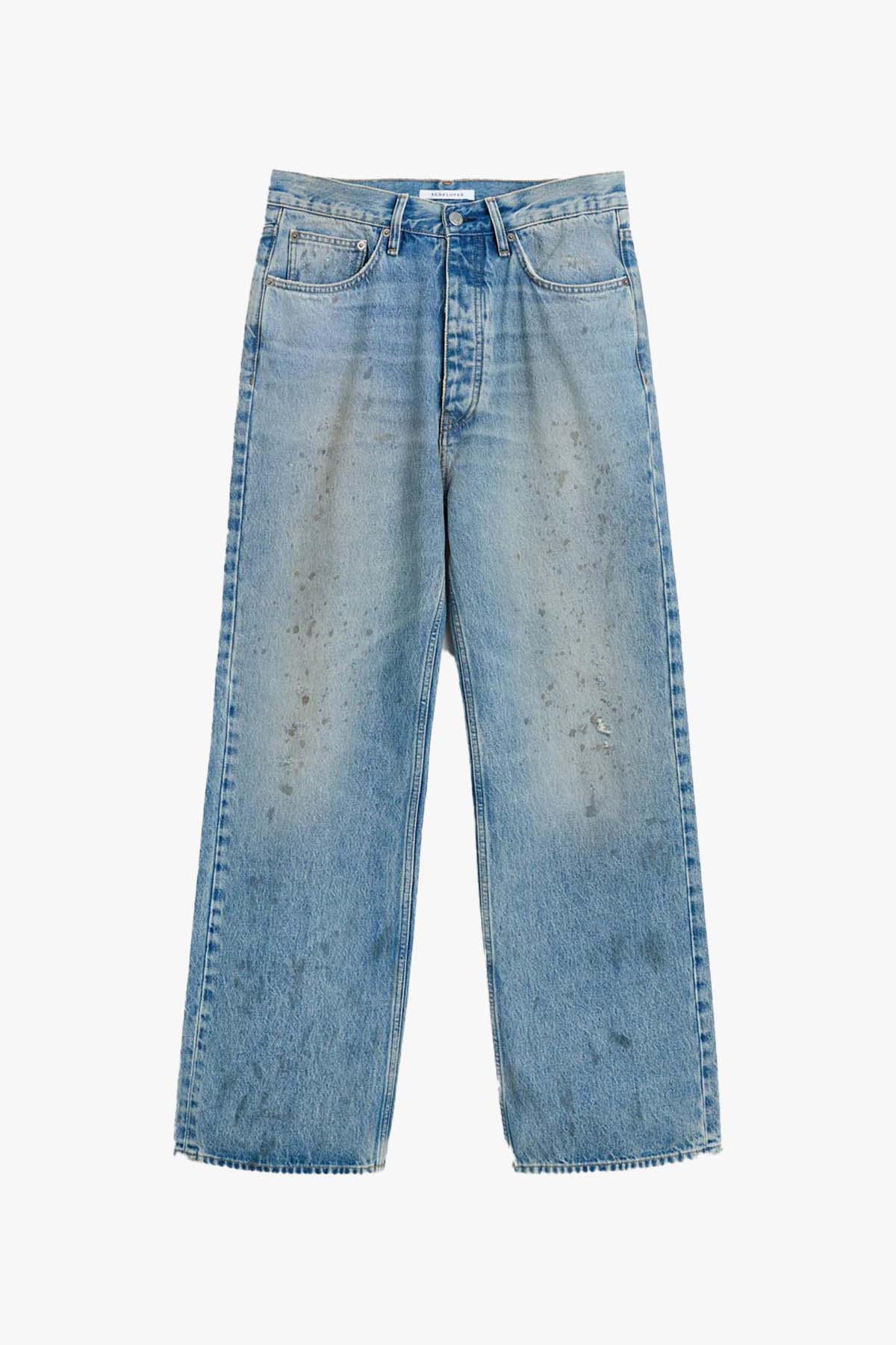 Relaxed Boot Cut Jeans fra Sunflower kommer i en ny passform med høyt liv, dyp rise og et avslappet rett ben. Jeansen er laget i en klassisk 14 oz ren indigo-denim og vasket i en lys til mellomblå stonewash som gir et autentisk, brukt uttrykk med malingsflekker. Et gjennomført håndverksplagg i økologisk bomull med resirkulerte metalldetaljer.