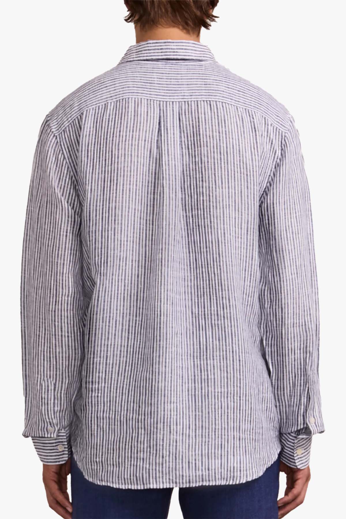Frescobol Carioca Telles Linen Striped Shirt er en avslappet linskjorte designet for varme dager og uanstrengt stil. Skjorten er laget i 100% lin som gir en lett og pustende følelse, og stoffet er behandlet med aloe vera for en ekstra myk og behagelig finish mot huden. Fine stripemønstre og en klassisk point collar tilfører et raffinert preg, mens den avslappede silhuetten gjør skjorten ideell til både hverdagsbruk og sommerlige anledninger.