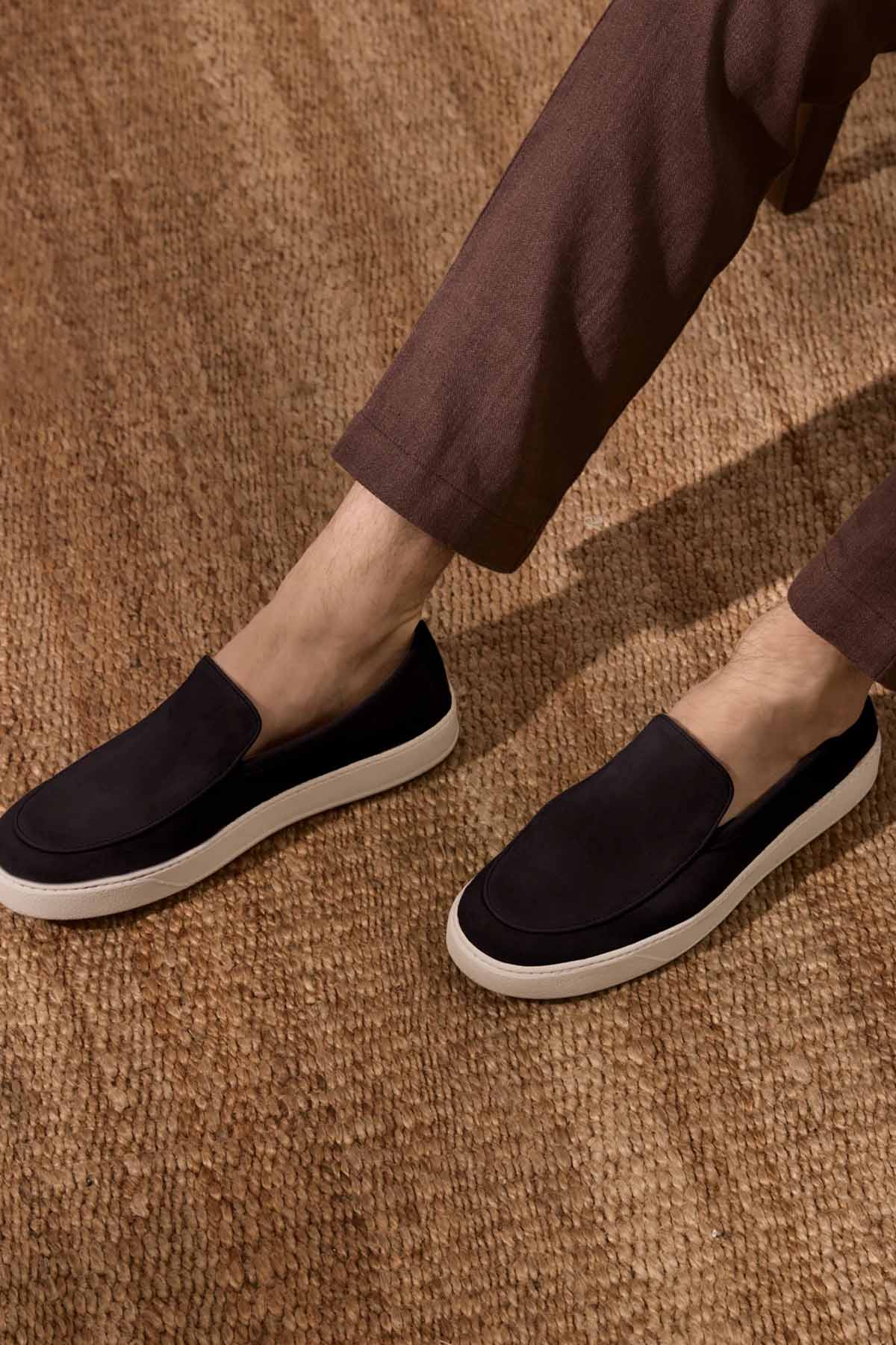 Frescobol Carioca Vela Suede Loafer er håndlaget i Italia av mykt kalveskinn og designet for en livsstil mellom hav og by. Den lette og fleksible konstruksjonen gjør skoen komfortabel gjennom hele dagen, samtidig som den gir et mer raffinert alternativ til en klassisk sneaker. Den vannavvisende Go Rain finishen beskytter overdelen i semsket skinn, mens Vibram gummisålen gir godt grep uten å etterlate merker. Den myke konstruksjonen gjør også at skoen kan foldes flatt, noe som gjør den ideell å pakke med på reise.