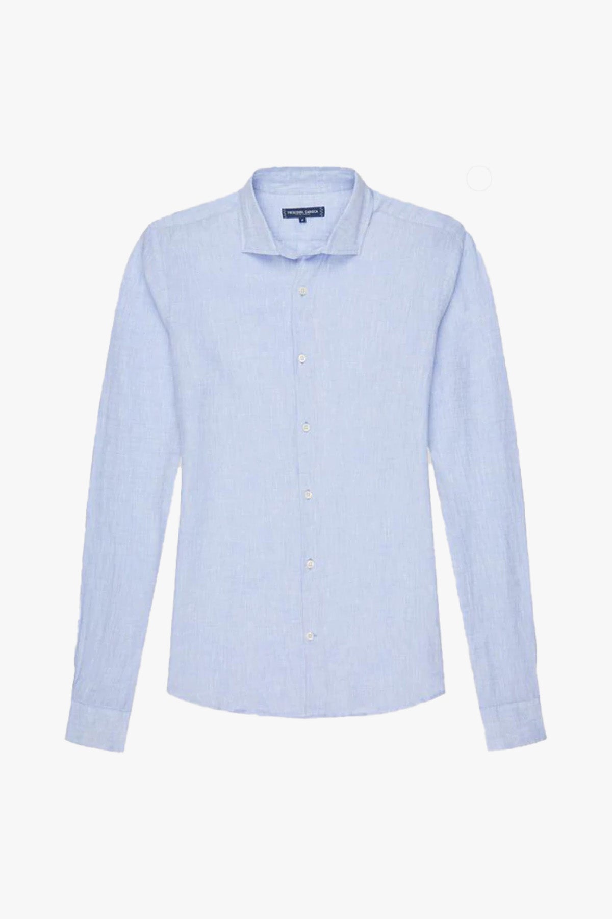A house classic, the Antonio Linen shirt is a wardrobe staple. It's made from fine Italian linen, to fit a regular silhouette, structured with a dress shirt collar and finished with pearlescent buttons.