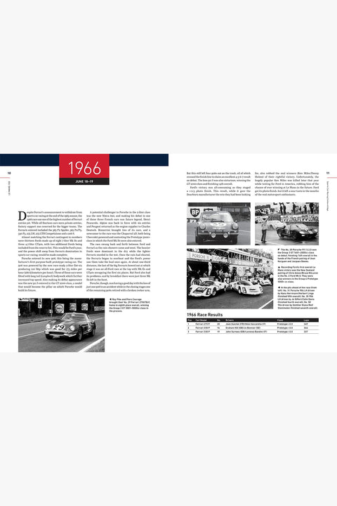 Le Mans features cars, and two-driver teams that cover more than 3000 miles during the race. La mans 100 is a thorough year by year history showcasing all the aspects of the grueling contest.